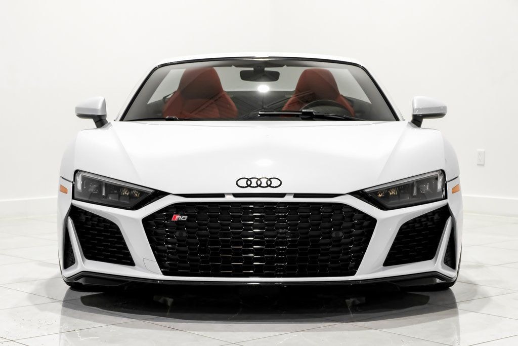Clean CARFAX. Suzuka Gray Metallic 2020 Audi R8 5.2 quattro quattro 7-Speed Automatic S tronic 5.2L V10 FSI DOHC LED Headlights, Dynamic Steerig, RED Break Calipers, Express Red w/Fine Nappa Leather Seat Trim or Diamond Stitched Seat Trim, 20" Wheel Package, Navigation system: MMI Navigation plus, Wheels: 20" 10-Spoke-Y Design Forged High-Gloss.