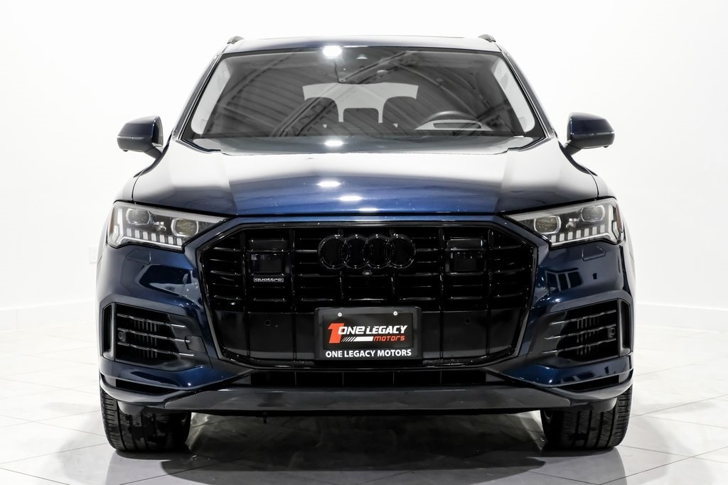 Waitomo Blue Metallic 2023 Audi Q7 55 Prestige quattro quattro 8-Speed Automatic with Tiptronic 3.0L TFSI Laser Headlights, 4-Zone Automatic Climate Control, Adaptive Cruise Assist w/Lane Guidance, Audi Phone Box w/Wireless Charging, Bang & Olufsen Premium Sound System w/3D Sound, Black Optic Package, Comfort Adaptive Air Suspension, Contour/Ambient LED Interior Lighting Package, Convenience Package, Dual-Pane Acoustic Glass for Side Windows, Executive Package, Front Seats w/Ventilation, Head-Up Display, Heated Rear Seats, Heated Steering Wheel, Illuminated Door Sills, Intersection Assist, Power Soft-Closing Doors, Prestige Package, Rear Door/Side Windows & Tailgate Sunshades, Remote Park Assist Plus, Topview Camera System, Traffic Sign Recognition, Wheels: 20" 5-Spoke Turbine-Design, Wheels: 21" 10-Spoke-Star-Design Bi-Color Black.