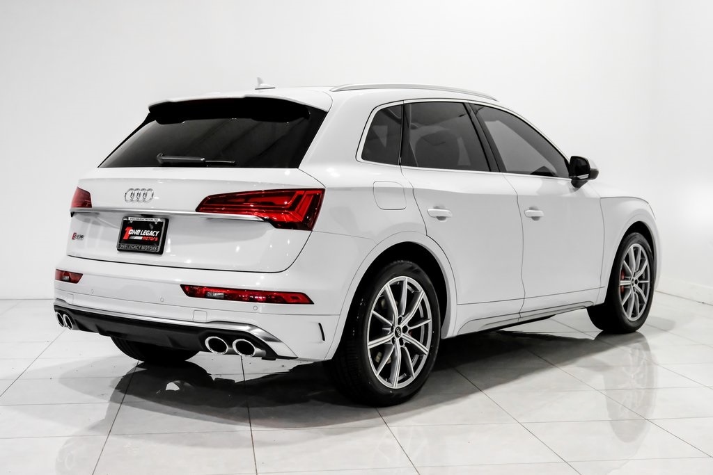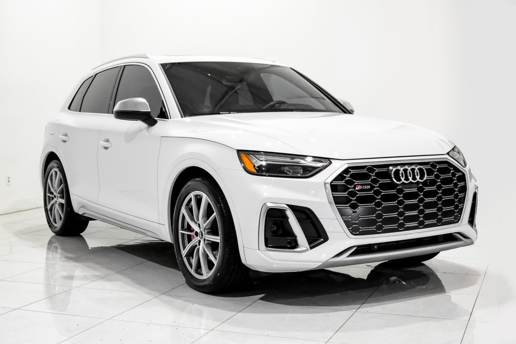 Clean CARFAX. CARFAX One-Owner. Glacier White 2023 Audi SQ5 Premium Plus quattro quattro 8-Speed Automatic with Tiptronic 3.0L TFSI Audi Advanced Key, Auto-Dimming Power Folding Exterior Mirrors, Convenience Package, Driver Seat Memory, Heated Steering Wheel, LED Interior Lighting Plus Package, Navigation Package, Radio: MMI Navigation Plus, Red Brake Calipers, S Sport Package, SiriusXM w/360L, Sport Adaptive Air Suspension, Sport Rear Differential.