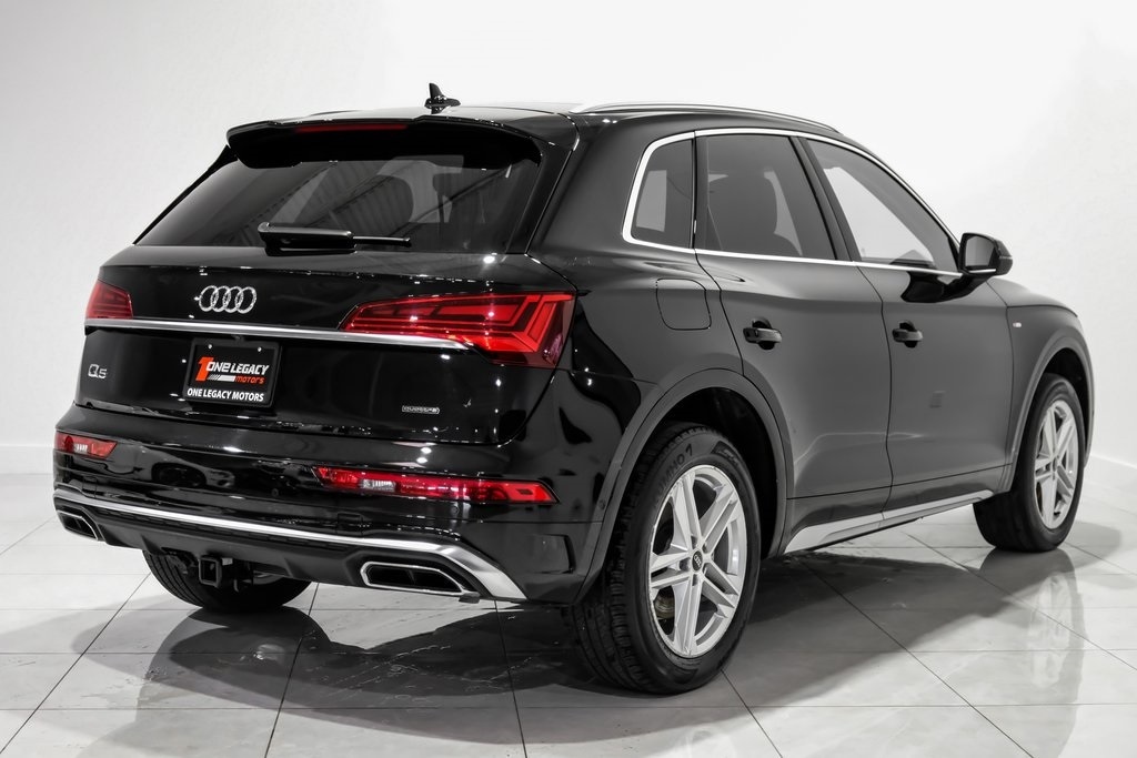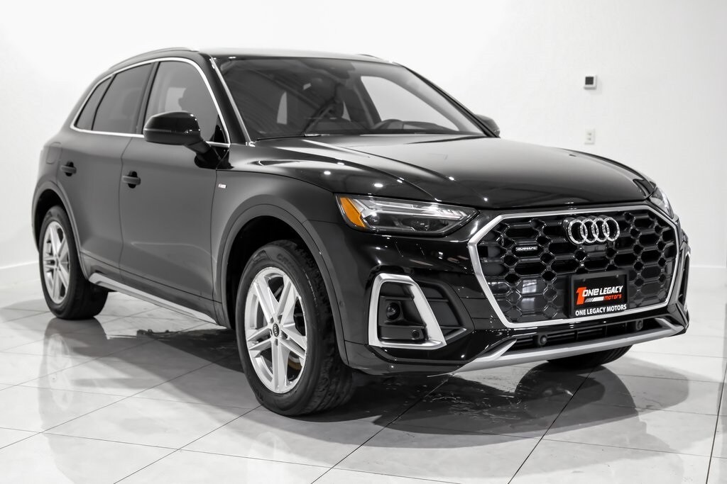 Clean CARFAX. CARFAX One-Owner. Mythos Black Metallic 2024 Audi Q5 e 55 Prestige S Line quattro 7-Speed Automatic S tronic 2.0L Turbocharged Audi Advanced Key, Audi Connect NAV & PLUS, Auto-Dimming Power Folding Exterior Mirrors, Bang & Olufsen Sound System w/3D Sound, Convenience Package, Deluxe Pre-Entry Climate Control, Driver Seat Memory, Dual Pane Acoustic Glass for Front Side Windows, Head-Up Display, Heated Rear Seats, LED Interior Lighting Plus Package, Manual Rear Side Window Shades, Matrix-Design LED Headlights w/Headlight Washers, MMI Navigation Plus, Navigation Package, Panoramic Sunroof, Park Assist, Power Adjustable Steering Column, Prestige Package, SiriusXM w/360L, Top View Camera System, Traffic Sign Recognition, Ventilated Front Seats, Warm Weather Package, Wireless Phone Charging Pad.