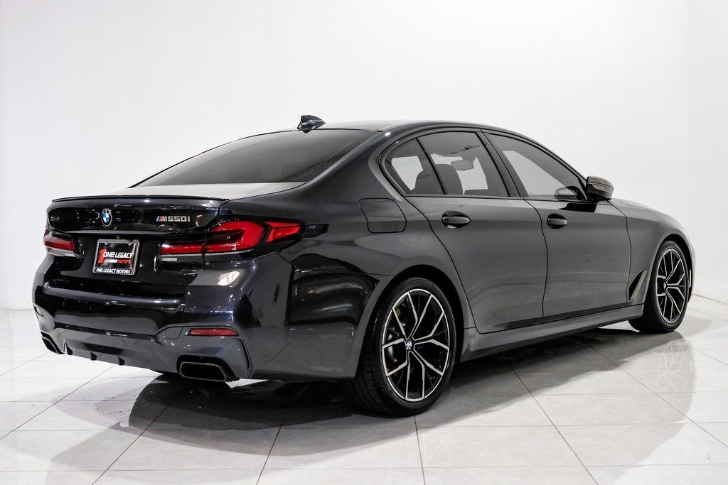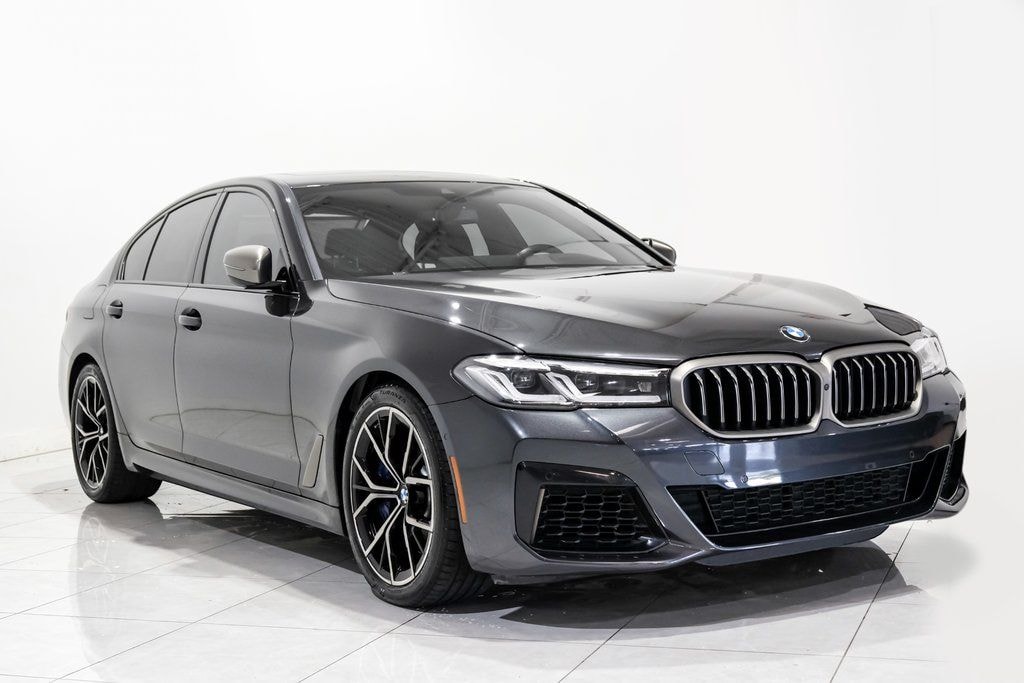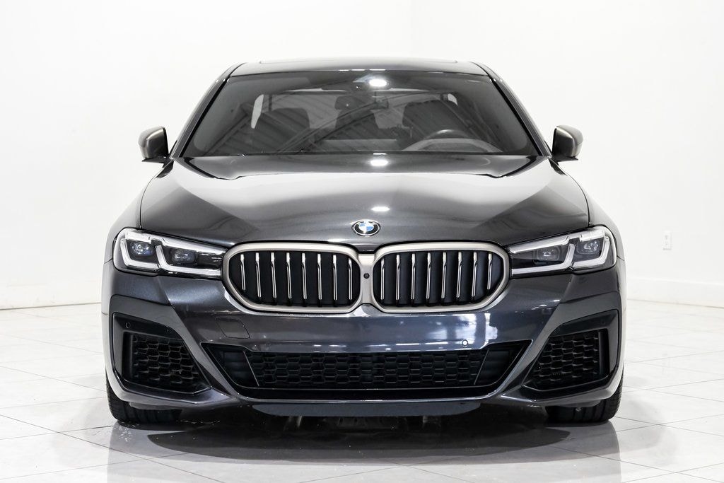 Dark Graphite Metallic 2023 BMW 5 Series M550i xDrive AWD 8-Speed Automatic Sport 4.4L V8 Twin Turbocharged AWD, Black w/Nappa Leather Upholstery, Active Park Distance Control, Ceramic Controls, Connected Package Pro, Drive Recorder, Executive Package, Head-Up Display, Parking Assistance Package (DISC), Parking Assistant Plus, Power Rear Sunshade & Rear Side Window Shades, Rear-View Camera, Surround View w/3D View.