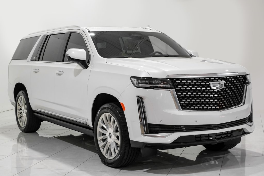 Crystal White Tricoat 2024 Cadillac Escalade ESV Premium AWD 10-Speed Automatic 6.2L V8 AWD, 2-Speed Active Transfer Case, Adaptive Cruise Control, Air Ride Adaptive Suspension, AKG Studio 19-Speaker Audio System, Automatic Seat Belt Tightening, Door Lock & Latch Shields, Electronic Limited-Slip Differential, Enhanced Automatic Emergency Braking, Enhanced Automatic Parking Assist, Extra Capacity Cooling System, Glass Breakage Sensor, Heated & Ventilated Driver & Front Passenger Seats, Heavy-Duty Trailering Package, Hitch Guidance w/Hitch View, Illuminating Front & Rear Sill Plates, Integrated Trailer Brake Controller, Lane Change Alert w/Side Blind Zone Alert, Magnetic Ride Control Suspension, Mechanical Limited-Slip Differential, Performance Package, Power Panoramic Tilt-Sliding Sunroof, Preferred Equipment Group 1SB, Rear Camera Mirror, Rear Camera Mirror Washer, Rear Cross Traffic Alert, Reconfigurable Full-Color Head-Up Display, Reverse Automatic Braking, Running Board Assist Steps, Smart Trailer Integration Indicator, Soft Closing Front & Rear Doors, Theft-Deterrent Alarm System, Touring Package, Trailer Side Blind Zone Alert, Trailer Tire Pressure Monitoring System, Trailering Assist Guidelines, Vehicle Inclination Sensor, Vehicle Interior Movement Sensor, Wired Auxiliary Trailer Camera (LPO).
