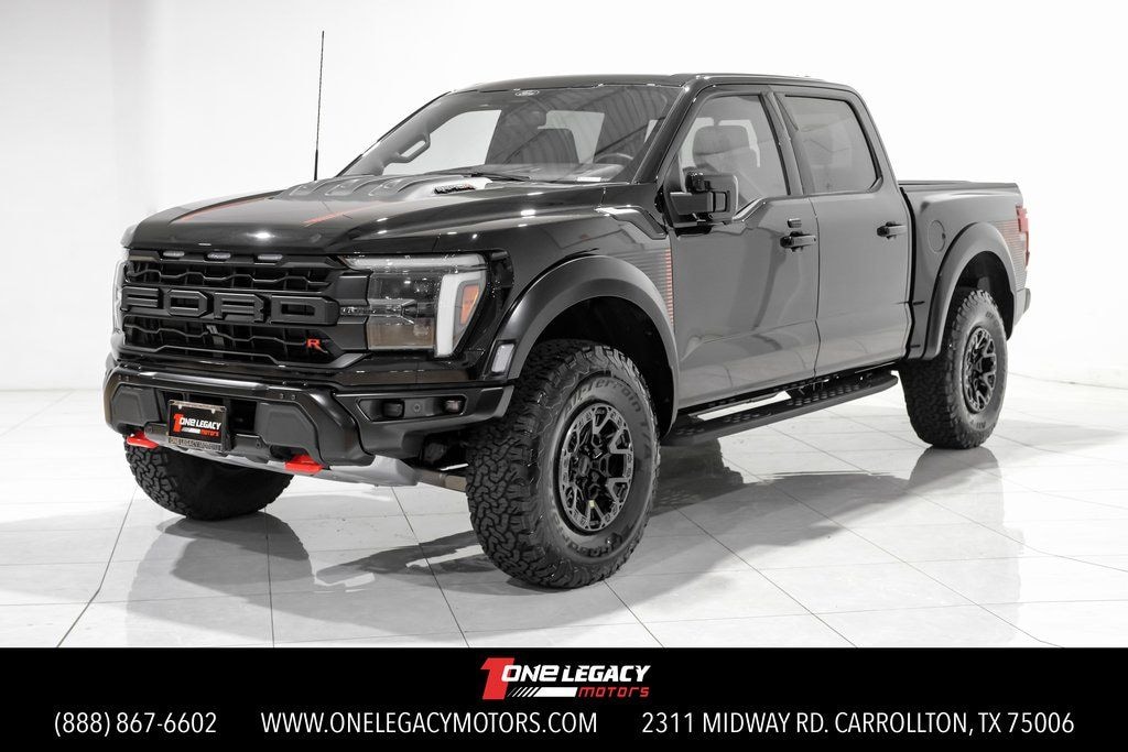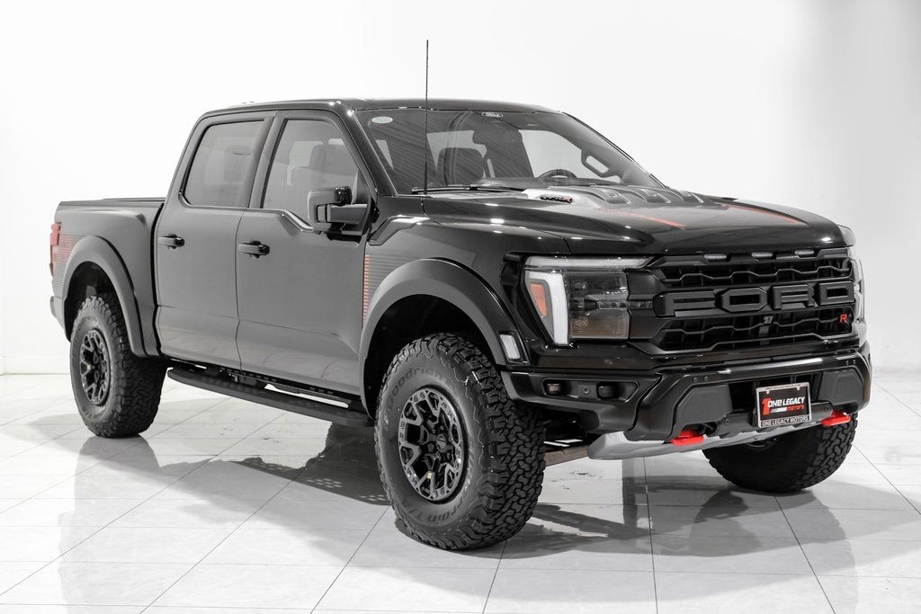 Clean CARFAX. CARFAX One-Owner. Agate Black Metallic 2025 Ford F-150 Raptor 4WD 10-Speed Automatic 5.2L V8 4WD, Code Orange Front Tow Hooks, Code Orange Stitching Doors & Instrument Panel, Dual Valve Shocks, Equipment Group 803A Raptor R, Interior Code Orange Raptor R Badging, Modular Front Bumper, Raptor R Badge Tailgate Applique, Raptor R Exterior Graphics, Raptor R Exterior Theme, Raptor R Interior Theme, Raptor R Unique Grille, Raptor R Unique Hood Vent w/R Badge, RECARO w/Code Orange Stitching Front Seats, Removes 2KW Pro Power Onboard, Unique Carbon Fiber Appliques, Upgraded Dual Exhaust, Wheels: Raptor R Unique 17" Forged Aluminum.
