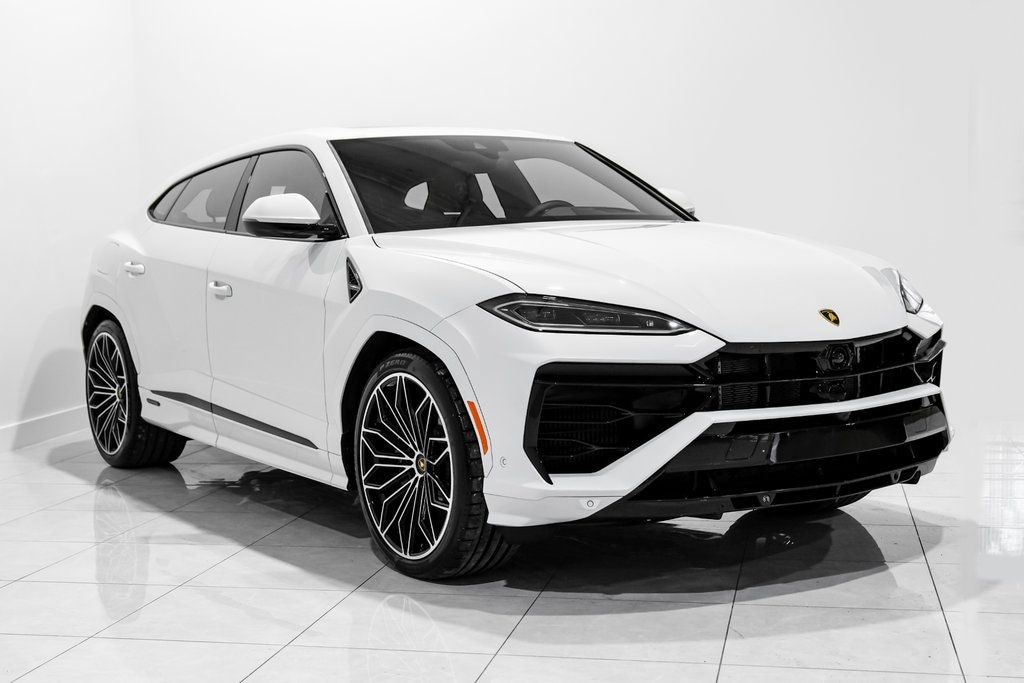 Clean CARFAX. CARFAX One-Owner. Bianco Icarus Metallic 2025 Lamborghini Urus AWD 8-Speed Automatic 4.0L V8 Wheels: 23" Galanthus Shiny Black.