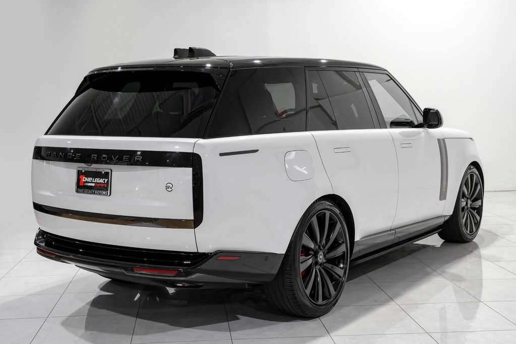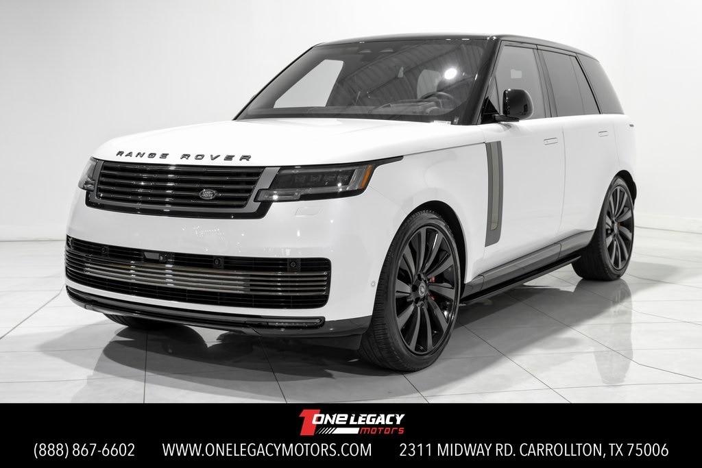 $220k MSRP, Clean CARFAX. White 2023 Land Rover Range Rover SV AWD ZF 8-Speed Automatic 4.4L V8 Twin Turbocharged Gray Leather, SV Semi-Aniline Leather Seat Trim, Wheels: 23" Forged Satin Dark Grey w/Satin Blk Con.
