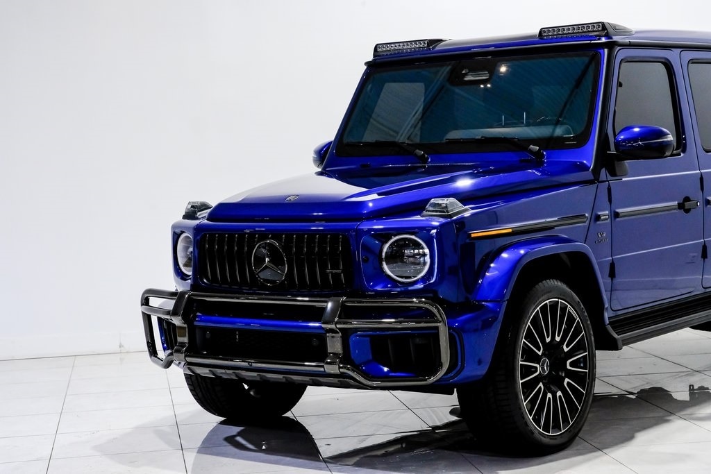 Clean CARFAX. CARFAX One-Owner. Brilliant Blue Metallic 2025 Mercedes-Benz G-Class G 63 AMG® 4MATIC® 4MATIC® 9-Speed Automatic V8 Dash Cam, Trailer Manoeuvring Assist, AMG Performance steering wheel in carbon, AMG LED Projectors, Brush Guard in Dark Chrome, Dark Chrome AMG® Emblem & Exterior Badging, Drive-Dynamic Multicontour Front Seats w/Massage, ENERGIZING Package Plus, Exclusive Interior Package, Front Ventilated Seats, G manufaktur Front Passenger Grab Handle Badge, MANUFAKTUR Bumper Insert in Dark Chrome, MANUFAKTUR Dark Chrome Front Simulated Underguard, MANUFAKTUR Dark Chrome Package, MANUFAKTUR Dark Chrome Package (P61), MANUFAKTUR Interior Package, MANUFAKTUR Interior Package Plus, MANUFAKTUR Interior Package Plus (P77), Rapid Heating Front Seats, Seat Comfort Package, Wheels: 22" AMG® Black Multi-Spoke Forged.