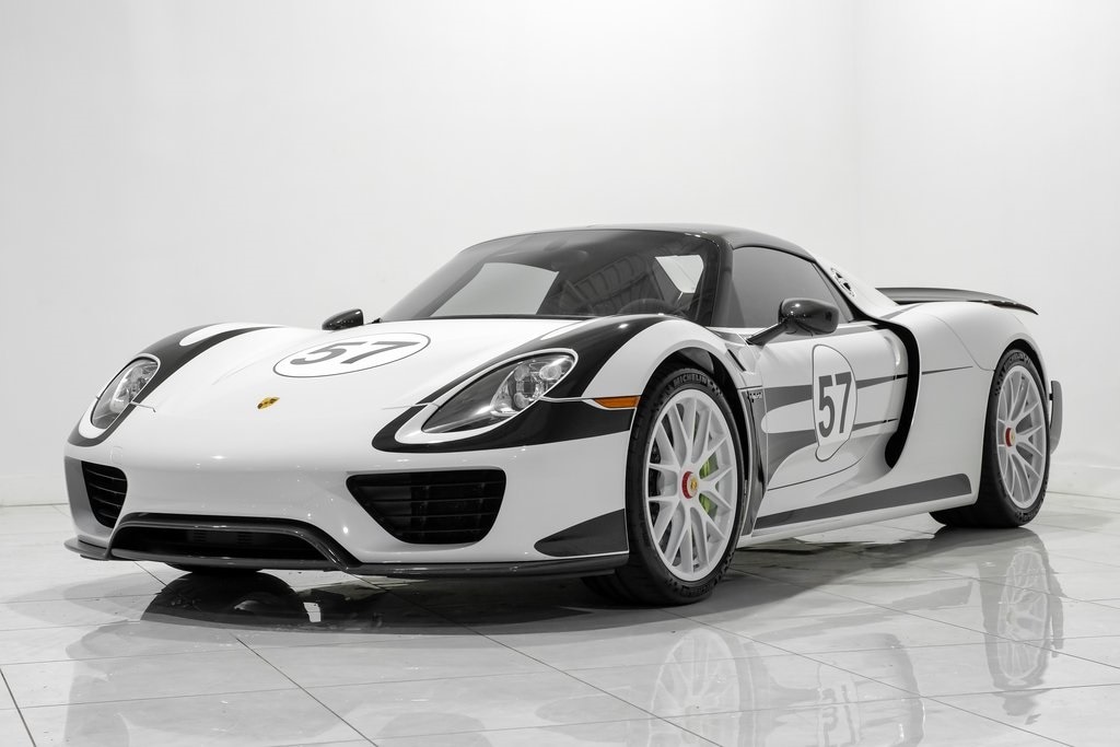 2015 Porsche 918 Spyder Weissach Package AWD 7-Speed Porsche Doppelkupplung (PDK) 4.6L V8 DI DOHC Hybrid Front Lift, Custom Tailoring Option, 4.6L V8 DI DOHC Hybrid, ABS brakes, Burmester High-End Surround Sound System, Carbon Floormat w/Silver Piping, Electronic Stability Control, Glare Reducing Interior Package, Heated door mirrors, Illuminated entry, Lightweight Bucket Seats w/Tighter Fit, Low tire pressure warning, Navigation System, Porsche Communication Management, Remote keyless entry, Traction control, Weissach package leather interior.