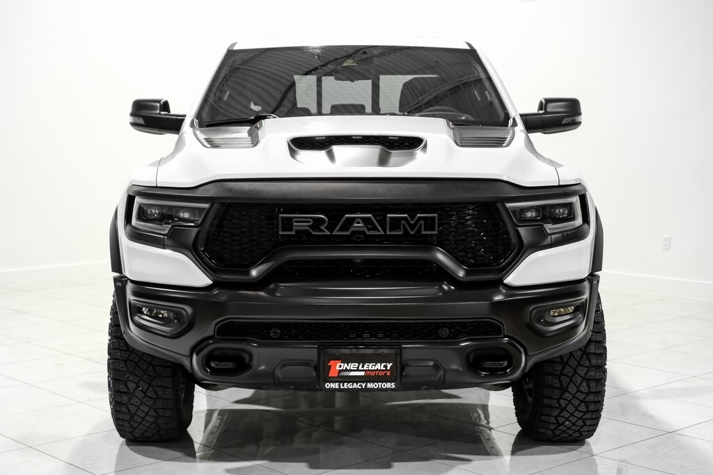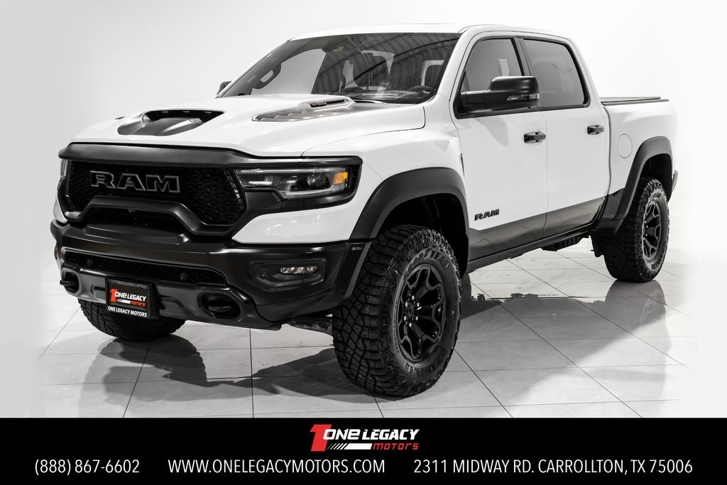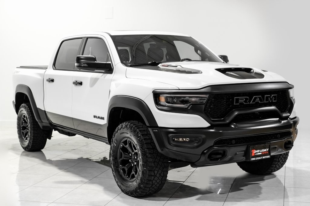 Clean CARFAX. CARFAX One-Owner. Bright White Clearcoat 2024 Ram 1500 TRX 4WD 8-Speed Automatic 6.2L Supercharged HEMI V8 SRT #2 Seat Foam Cushion, 2-Door Passive Entry, Front Door Locks, 4 Way Front Headrests, Accent Color Door Handles, Adaptive Cruise Control w/Stop & Go, Advanced Safety Group, Blind Spot & Cross Path Detection, Bucket Seats, Digital Rearview Mirror, Driver Seat Memory, Driver/Passenger Wrapped Assist Handles, Exterior Mirrors w/Memory, Front Door Accent Lighting, Front Seat Back Map Pockets, Full Length Premium Upgraded Floor Console, harman/kardon 19 Speaker Premium Sound, Heads-Up Display, Heated Front Seats, Heated Second Row Seats, Heated Steering Wheel, IP LED Ambient Light Pipe, Lane Keep Assist, Leather Trimmed Bucket Seats, Leather/Suede Flat-Bottom Steering Wheel, LED CHMSL Lamp, Luxury Front Door Trim Panel, MOPAR Bright Pedal Kit, Navigation System, ParkSense Front/Rear Park Assist w/Stop, Pedestrian Emergency Braking, Pick-Up Box Lighting, Power 4-Way Driver Lumbar Adjust, Power 4-Way Passenger Lumbar Adjust, Power 8-Way Driver & Passenger Seats, Power Adjustable Pedals w/Memory, Premium Wrapped IP Bezel, Quick Order Package 29Y TRX, Radio/Driver Seat/Mirrors/Pedals Memory, Rain Sensitive Windshield Wipers, Rear 60/40 Folding Seat, Rear 60/40 Folding Split Recline Seat, Rear Door Accent Lighting, Rear Underseat Compartment Storage, Rear Window Defroster, Remote Tailgate Release, Sun Visors w/Illuminated Vanity Mirrors, Surround View Camera System, Trailer Brake Control, TRX Level 2 Equipment Group, Universal Garage Door Opener, Ventilated Front Seats, Ventilated Rear Seats, Wireless Charging Pad.